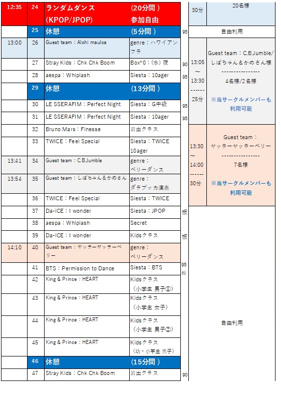 11. 記録写真・動画について : イベント当日、ステージ上を撮影しております。撮影動画は、後日 サークルメンバーだけが視聴可能な「YouTube限定配信」致します。お楽しみに♪ (ランダムダンス時は「スタッフ休憩時間」とし、動画撮影を中断します。ご了承ください。)